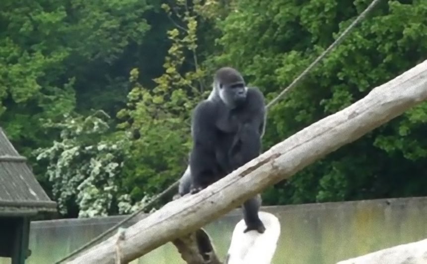 てわけでその二足歩行があまりにも人間じみてるとしてかねてから話題となっていた、イギリス・ケント州のポートリム野生動物公園にいる、アンバム氏の立ち居振る舞いを見ていくよ。もうゴリラも人間も変わらないんじゃん?って思うレベルの二足立ちなんだ。