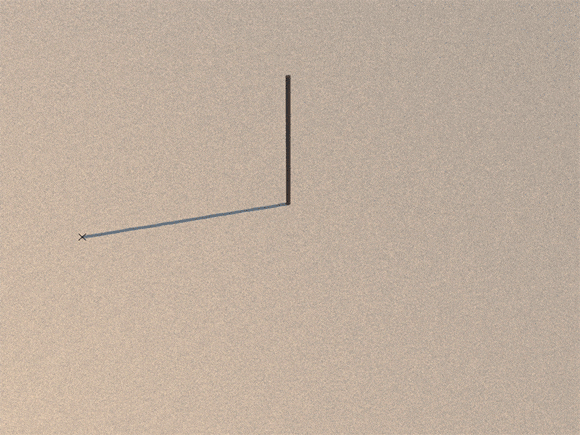 すると秋分では、影の先端がまっすぐにほぼ完璧な東西の線を描く。ただし反時計回りにわずかなズレが生じる。