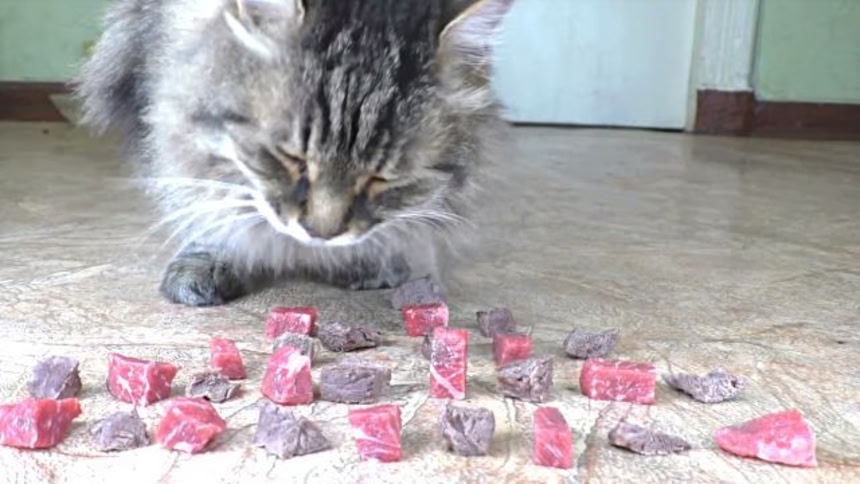 もともと猫は狩った獲物の肉を食べていたわけだし、今だって野良猫はネズミやスズメほか小動物を狩ってるわけだし、生肉の方がお好みでも不思議ではない。ちゃんと生の肉を消化できるので、そこに関しては問題はない。
