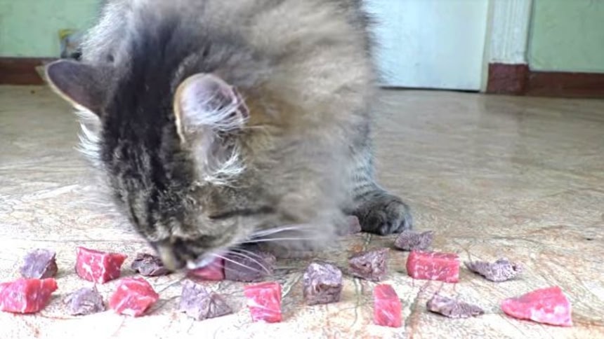 他の動画みたかぎり基本生肉ばっかり食べてる猫じゃない?