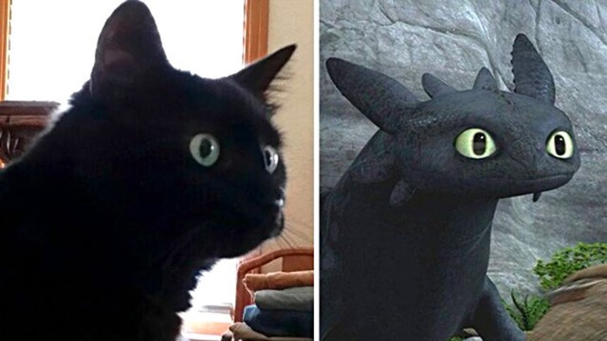 最近あんましはやんなくなった「完全に一致」シリーズだけど、ちょびっと古いネタを見つけてきたので黒猫クラスタのみんなにシェアするよ。2010年公開の3Dアニメ、「ヒックとドラゴン」を見たお友だちはいるかな。