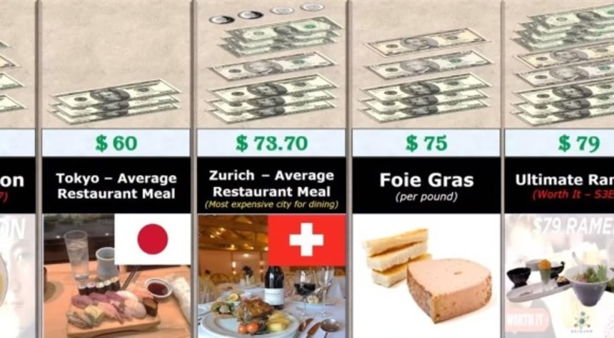 この画像を大きなサイズで見る世界各国で食べられているさまざまな食べ物の値段を比較した動画がユーチューブに投稿されていた。