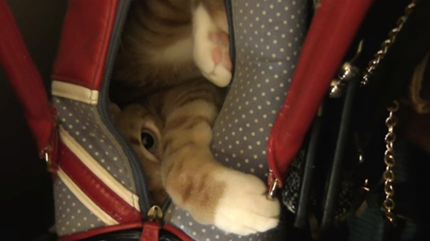 バッグに忍び込む隙を伺います…