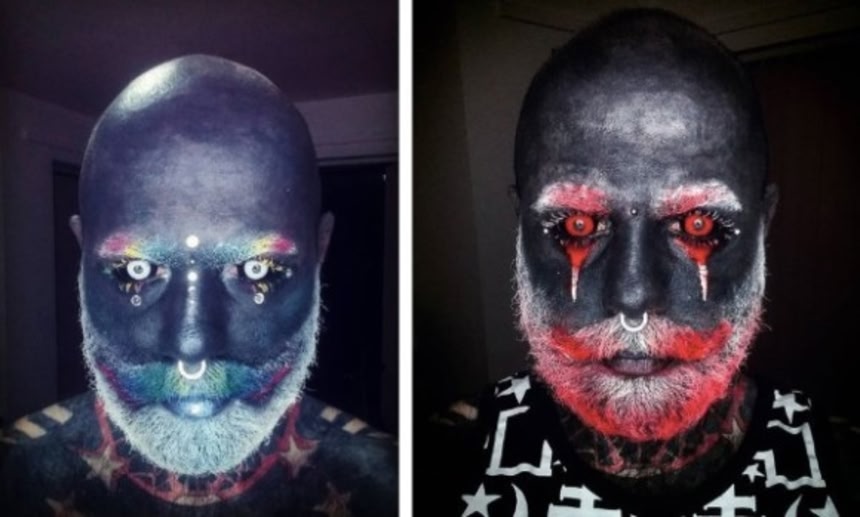 彼は12年間に渡り体にタトゥーを入れているが、昨年9月に頭部全体と眼球を黒色タトゥーで覆ったのだ。