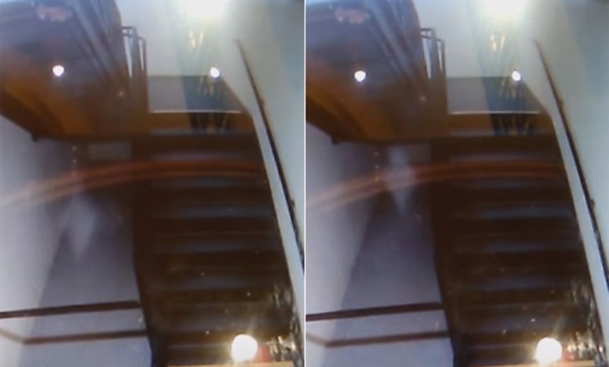 海外にて、ある男性が今月18日に記録したというその映像には、階段付近に浮かぶ半透明の白っぽい影のようなものがとらえられていた。