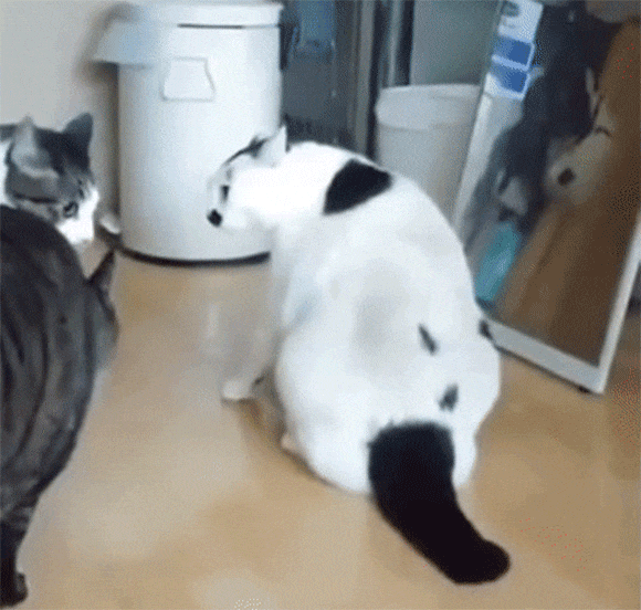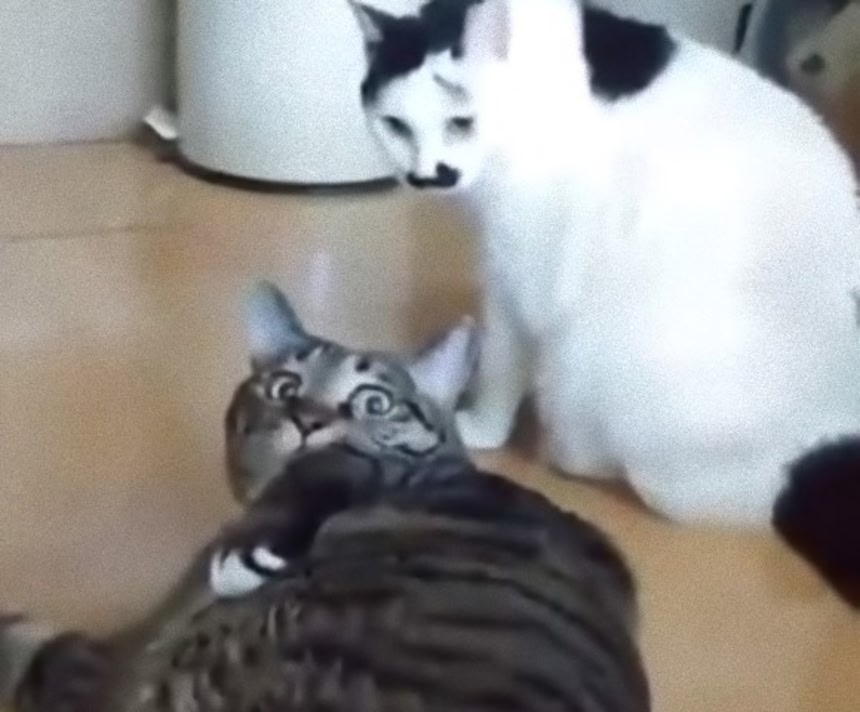 ゴロンする猫もすごいけど、ゴロンを認知して気が削がれて馬鹿らしいと撤退する猫の心変わりが見れるのも貴重な映像だろう。