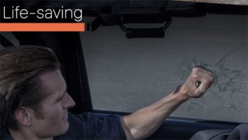 ペンの頭には、コンパクトながら強度の高いタングステン鋼ガラスブレイカーを搭載している。閉じ込められたらこれでガラスを割ればよいのだ。