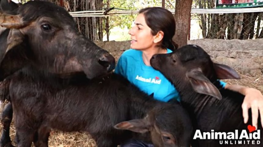 この画像を大きなサイズで見るこちらはスイギュウの赤ちゃんたち。向かって右がフラワー、左の子はシェルビー。お母さんのゴーダはひどいケガをしていたところを、Animal Aidに助けられたんだって。
