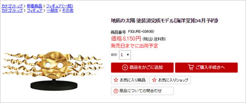そんな中、精巧なフィギュアを作ることで知られている海洋堂が手掛けた「地底の太陽 塗装済み完成モデル」が予約発売となった。発送は4月20日から。