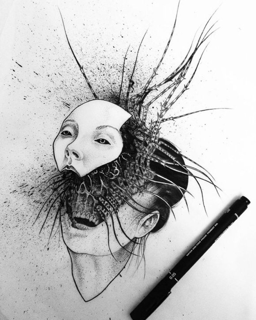 そのデザインは繊細なペン画のようで、一般的なタトゥとは一線を画している。