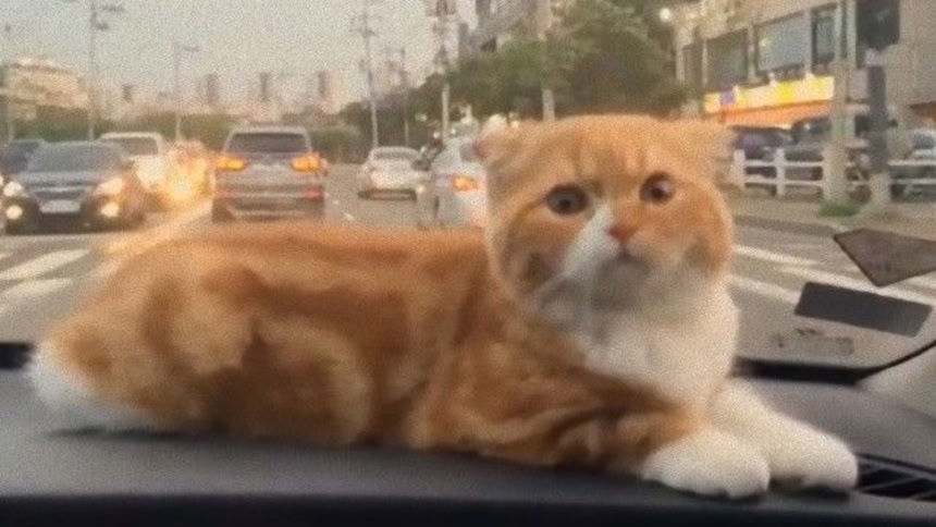 どうやらこちらのアメリカンショートヘアの猫、ドライブがけして嫌いではないらしい。むしろわりと居心地よさそうな表情すら見せてくれている。晴れの日も雨の日もおセンチな日もちょこんと車に座りドライブを楽しんでいるみたいだね。