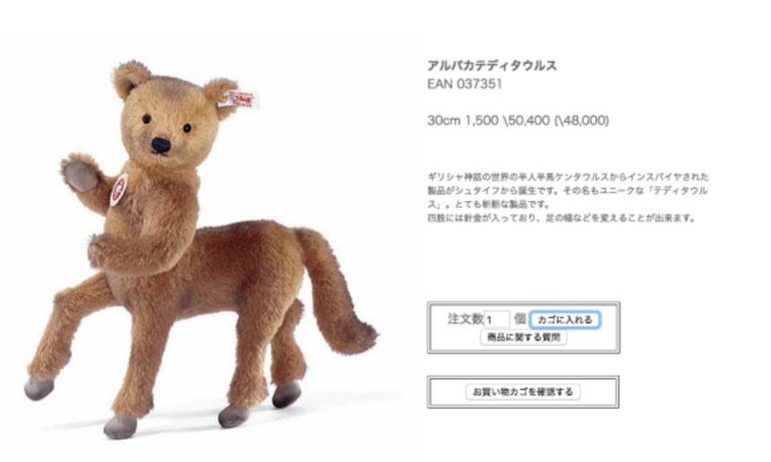 これがシュタイフの平常運転ってことなのかどうかは分からないままに、テデイベアとケンタウルスを合体させた「テディタウルス」なるぬいぐるみが発売されていたようだ。