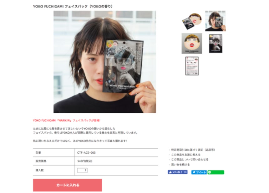 「クリエイターズ・ファイル」のオフィシャルストアで販売中のYOKO FUCHIGAMI「NARIKIRI」フェイスパック。