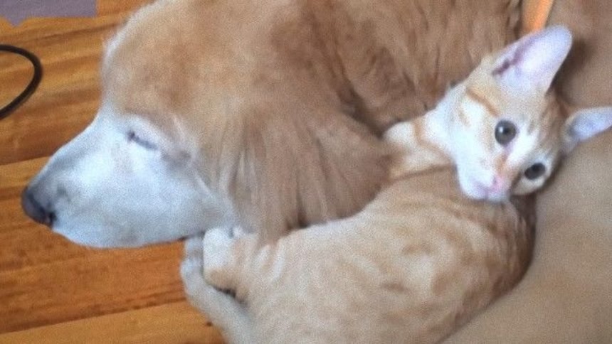 異種にも比較的抵抗なく心を開いてくれるゴールデン・レトリバーはよく小さな生き物の保護者兼お友達になってくれる。今回も1匹の優しいゴールデン・レトリバーが子猫と仲良く暮らしている動画が発見された。