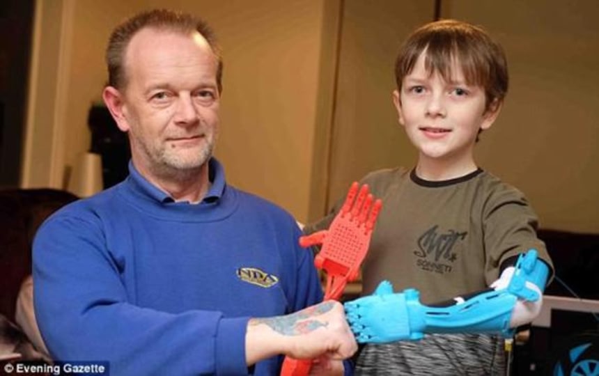 この画像を大きなサイズで見るカラム・ミラーさんは10歳の息子ジェイミー君を愛するお父さん。ジェイミー君は生まれつき左腕がなかった。そんなジェイミー君の為にカラムさんは、義肢制作を学び、3Dプリンターを使って義肢を制作した。