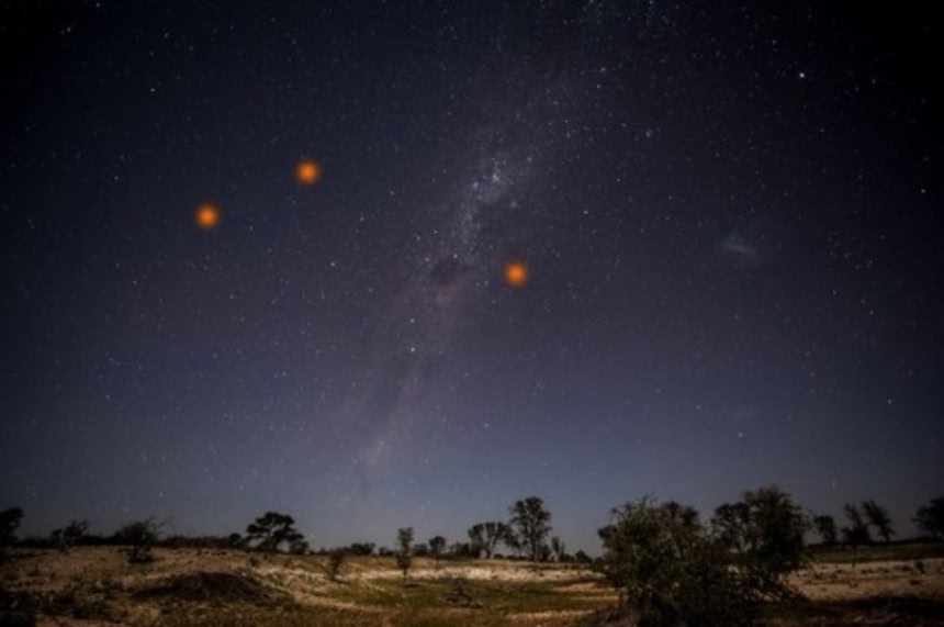 この画像を大きなサイズで見る2010年7月下旬、プレトリアでは二晩連続で空に奇妙な光が目撃された。目撃者の1人である女性は、「3つの光は眩し過ぎて形までは分からなかった」と証言している。