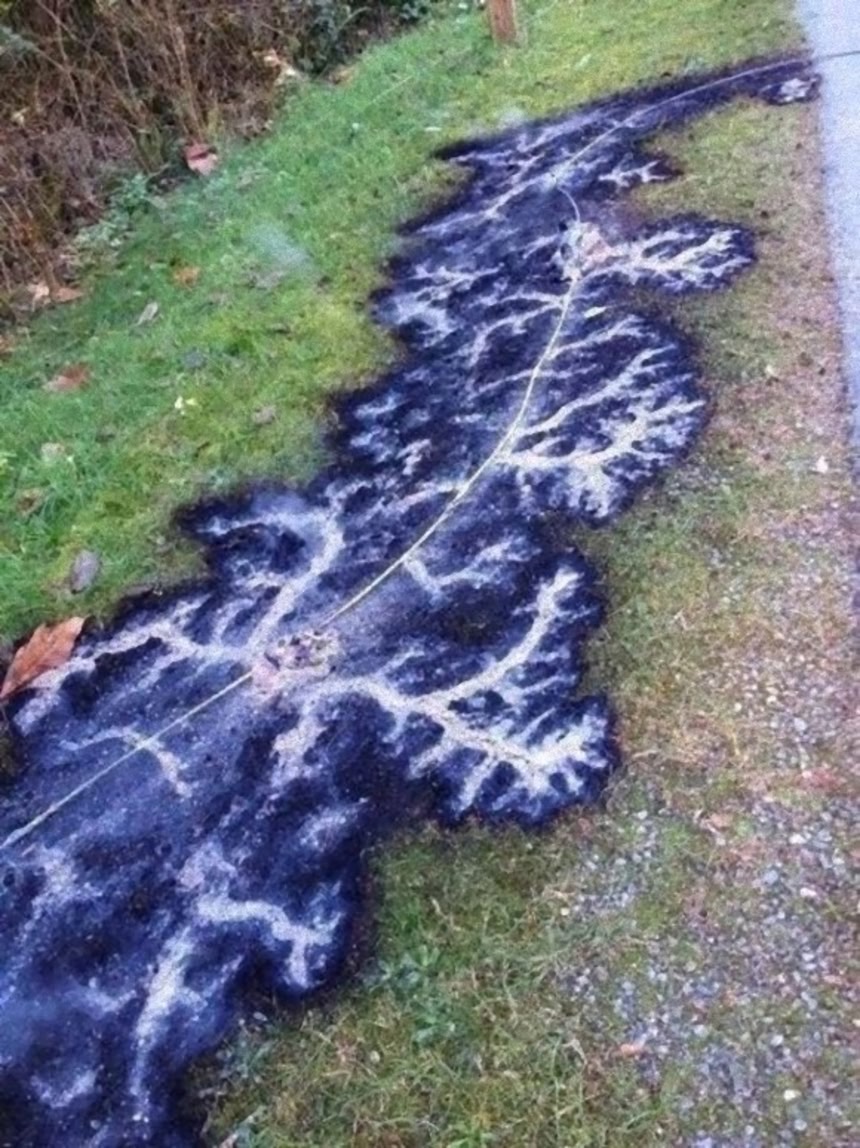 ポーランドの高速道路で、タンクローリーが中央分離帯に衝突する事故があった。運んでいた液状のチョコレート12トンが道路に流出した時の画像。