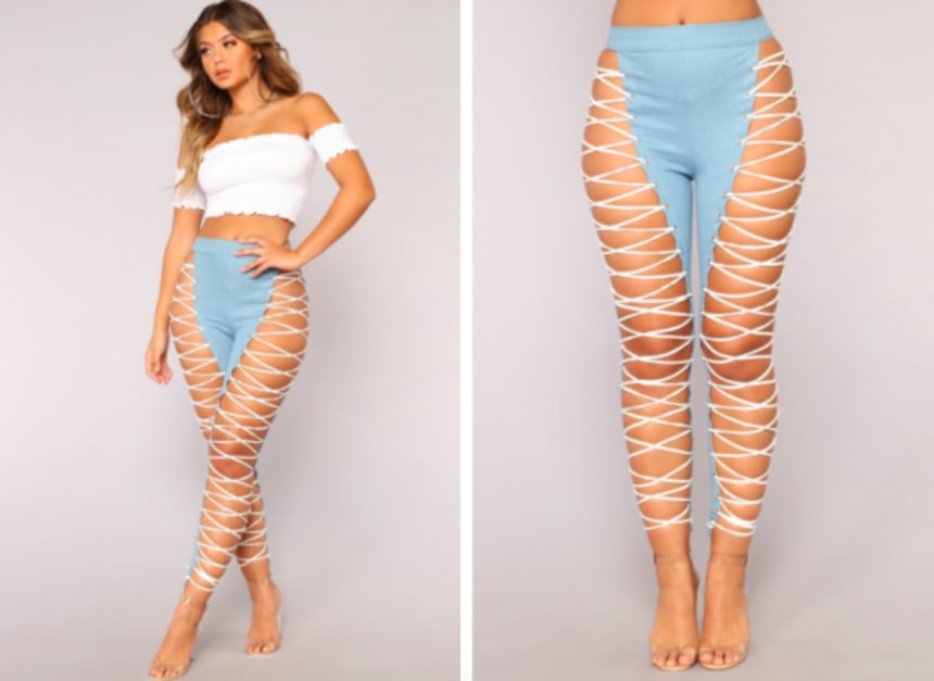 この画像を大きなサイズで見るジーンズも多様化が進み、ダメージやら極太やら何やらかにやらで、網タイツ系が登場して(関連記事)、ついにここまで来たかー。と感慨にふけっていたわけなんだけども、さらなる亜種が誕生していたようだ。