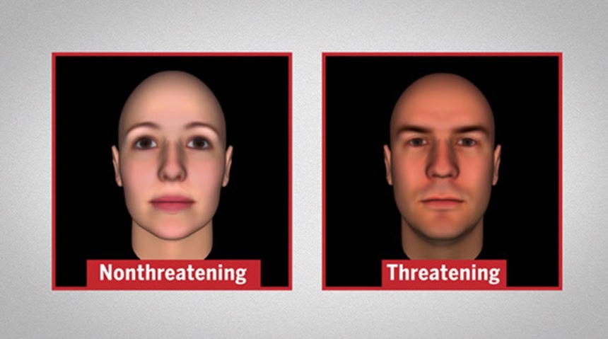 それを実証するために、青と紫を見分ける実験、危険人物の顔を見分ける実験が行われた。