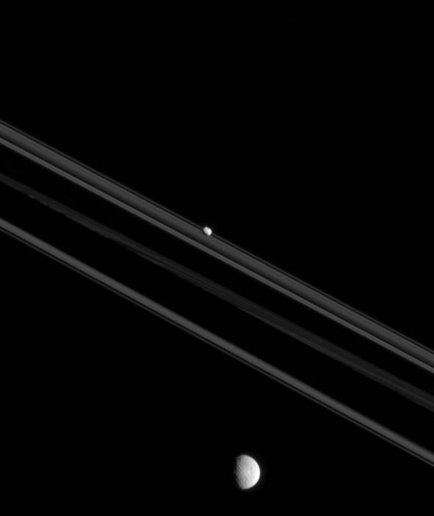 この画像を大きなサイズで見る環上方に軌道を持つエピメテウス