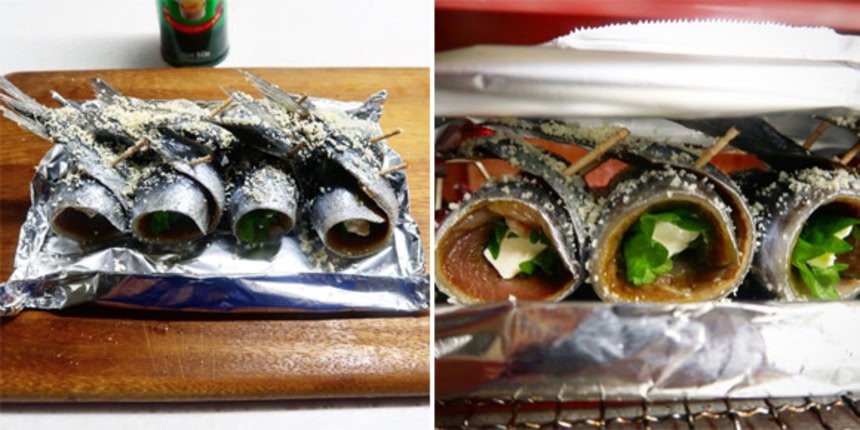 この画像を大きなサイズで見るあらかじめ開いてあるイワシを使えば、巻いて焼くだけと言う簡単料理。どちらもカルシウムたっぷりのイワシとチーズの相性もばっちりなんだから。