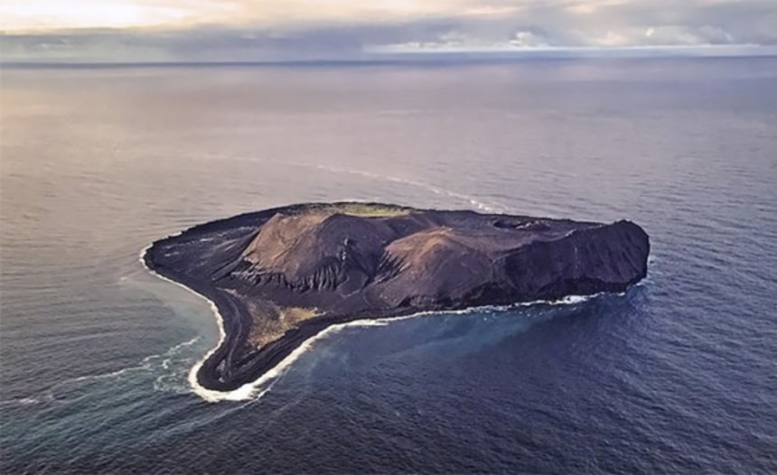 この画像を大きなサイズで見る1963年に海底火山の噴火でできた無人島。現在この土地は調査研究のみに使用されている。