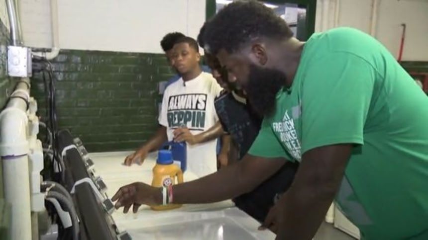 今年、同校の副校長から校長に就任したクック氏は、ニューアークのPSEG(パブリック・サービス・エレクトリック・アンド・ガス)から約222万円の寄付を引き出した。そして、フットボールチームの古いロッカールームをランドリールームに改装し、洗濯機と乾燥機を5台ずつ設置した。