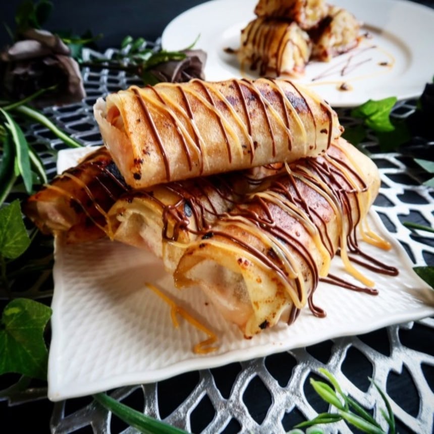 パリパリに焼けた春巻きの皮にとろりと溶けたバナナの食感、そこに香ばしいピーナッツと、ベーコンの塩気が程よく相まってまろやかになる。