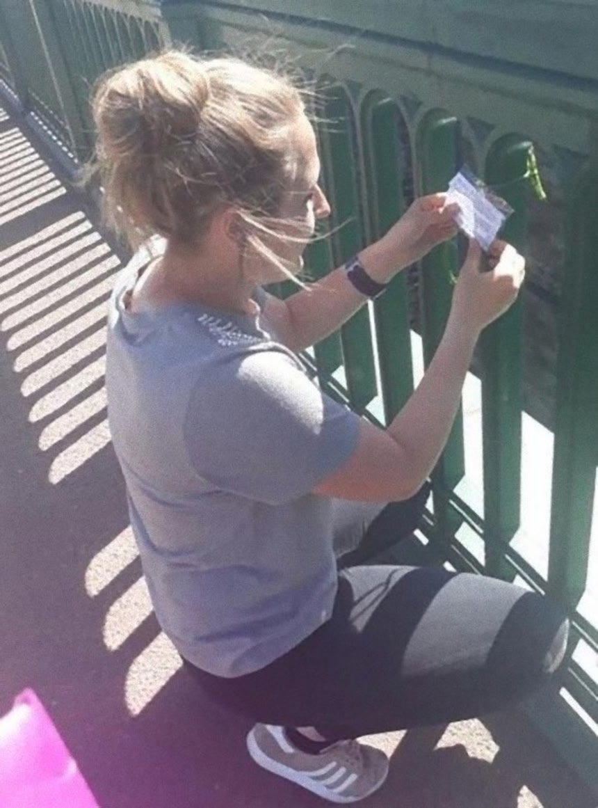 この画像を大きなサイズで見る飛び降り自殺の名所でもあるイギリスのワーマウス橋。その手すりにメモを取り付ける十代の女性。