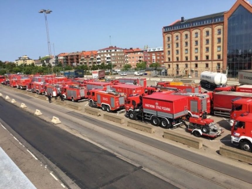 この画像を大きなサイズで見るポーランド政府は森林火災で消火活動に追われるスウェーデンを支援するため、139人の消防隊員と44台の消防車を送り込んだ。