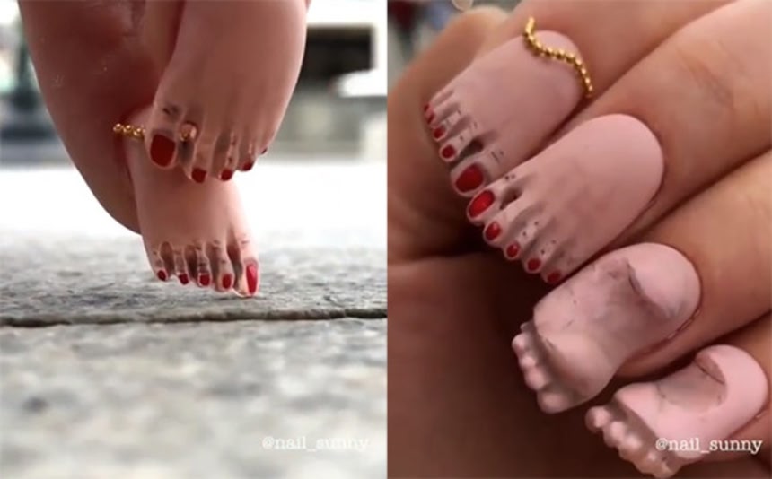 ロシアのネイルサロン「nail_sunny」がインスタグラムで公開したネイルアートは、手の指を足型に造詣し、ついでに歩かせちゃったというもの。