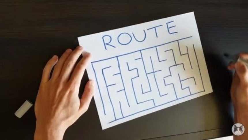 さあ、行け、プーシク! 見事に出口を見つけられるかな?