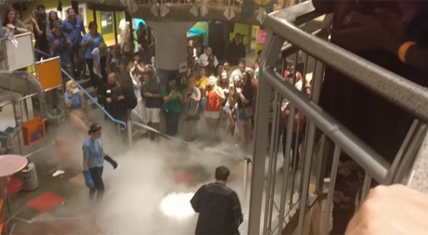 なんと液体窒素と熱湯でできる「雲」を見せる実験で、通常の反応をはるかに超える爆発的な雲が発生!