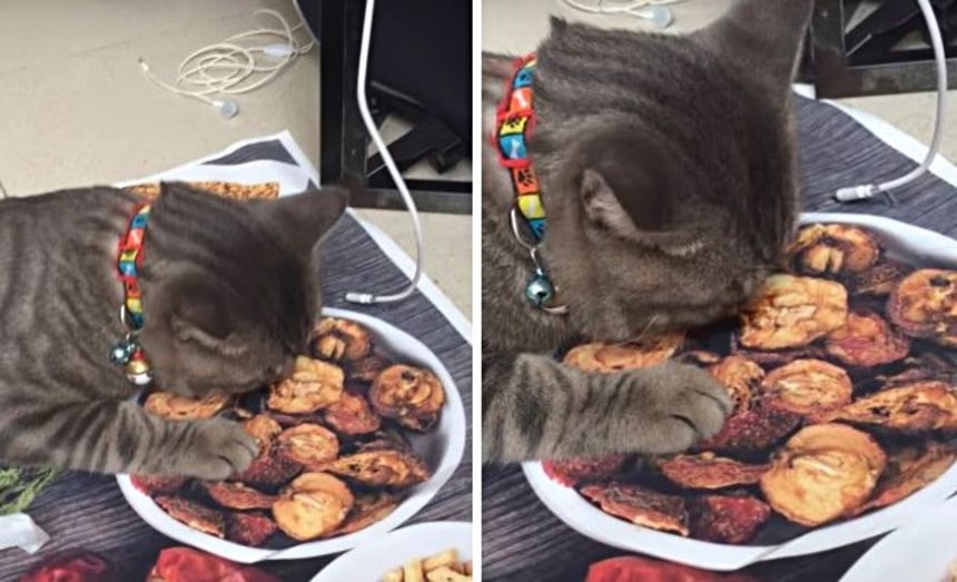 画面に映ってるごちそうだろうが、紙に印刷された料理だろうが、そんな時にはついつい味見しちゃいたくなる。だからこの猫の気持ちもわかる気がするんだよね。
