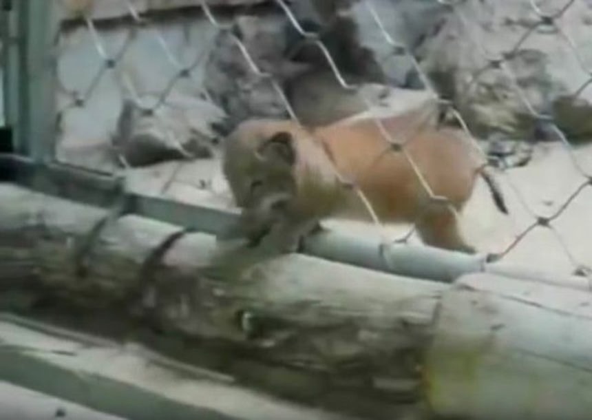 この画像を大きなサイズで見る一般的に、動物園にいる生き物たちは、オリや金網の向こう側にいるよね。だけどどうしたことか、このヤマネコの子どもは金網の”コチラ側”に出てきてしまったんだ。