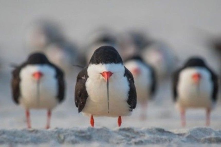 8番目の黒白でくちばしの長い鳥の群れ、なんか、目が見えなかったんだけど、どこに目があるんだろう。