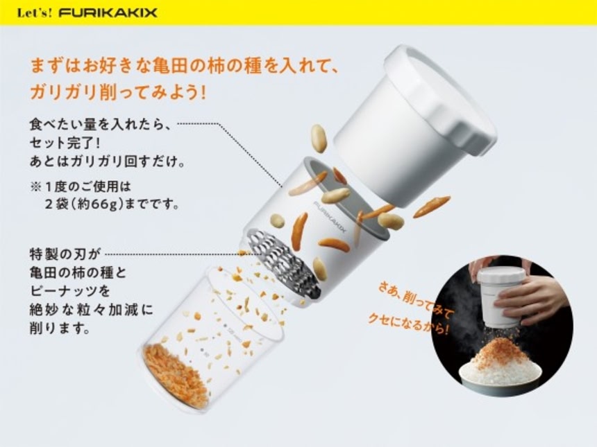 10月10日、なんと亀田製菓から柿の種をふりかけに超絶変化させる専用マシン「フリカキックス(FURIKAKIX)」が新発売されたのだ。