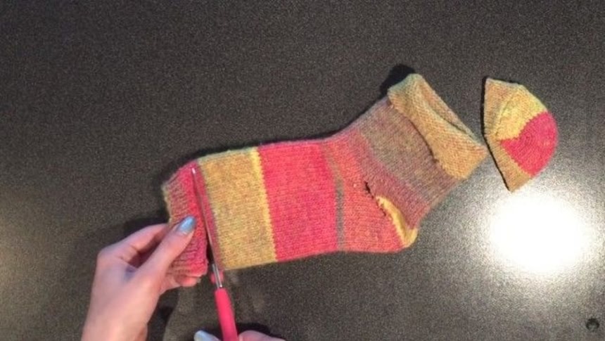 この画像を大きなサイズで見るまずつま先の部分をチョキチョキ切っちゃいます。
