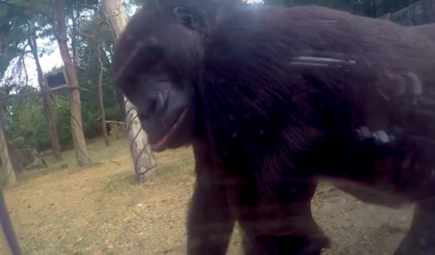 オランダ・アーネムにある王立バーガーズ動物園で、GoProカメラに興味津々の陽気なゴリラの姿がとらえられたみたいだよ。