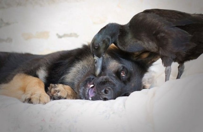 今回ご紹介する写真の数々は、ナターシャさんの飼い犬、ジャーマンシェパードのヴェンデッタと、インディアンランナー種のアヒル、レモニーの仲良しペアを撮影したものだ。