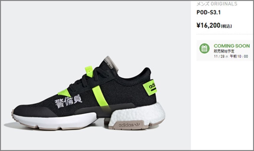 アディダスの「POD-S3.1」モデルの最新作として、「警備員」という漢字の刺繍ががっつり入ったスニーカーが11月28日から販売されるのだ。