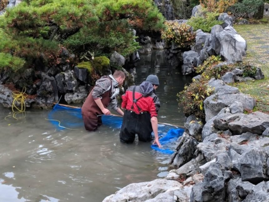 この事件を受けて中山公園のスタッフは、カワウソ容疑者の魔の手を逃れたコイ4匹を捕獲してバンクーバー水族館に移すことを決めた。