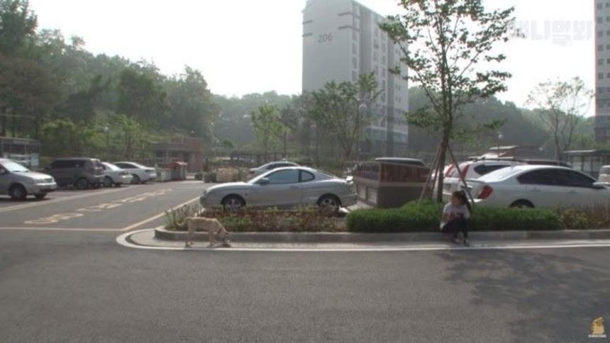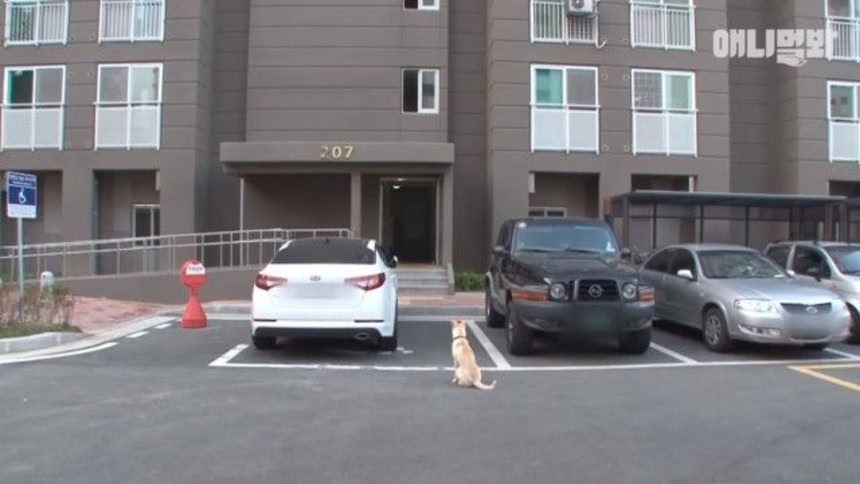 韓国のとある街にある、11階建てのマンションの駐車場。ここで日がな一日、とある1室の窓を見上げ続けている犬がいた。