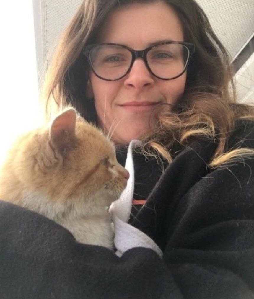 >家に2匹のペットがいるため最初は一時保護のつもりだったケイトリンさん。これから引き取り手を探そうと思っていたが、子猫の甘えでぐらついてた心が決まってしまった。