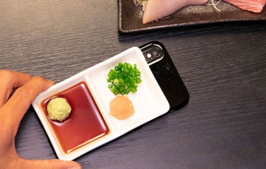 日本の食品サンプル職人が作った、超リアルな薬味皿スマホケースをスマホに装着したりなんかして、さ。