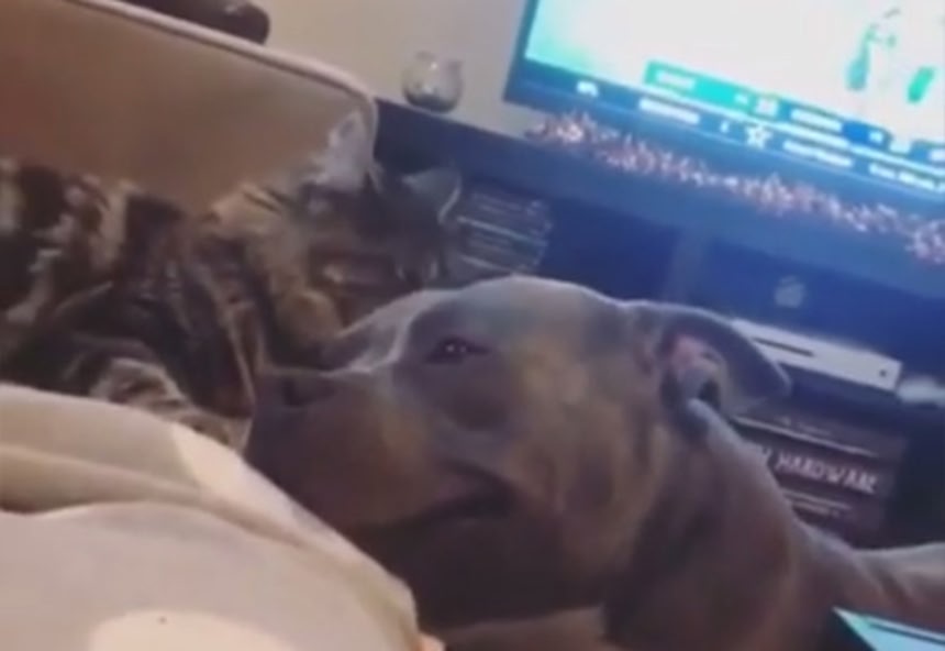 この犬って、猫が自分の事を大事に扱っているって理解してるよね。