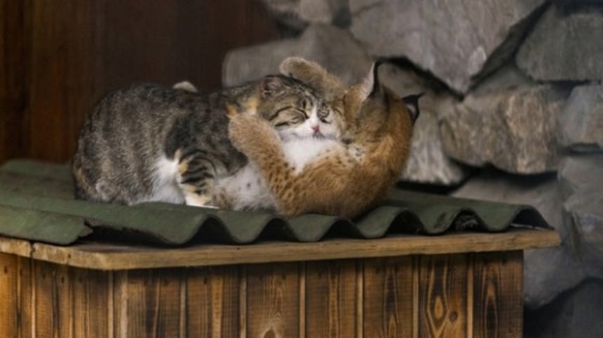 ロシアの別の動物園で山猫と仲良しな三毛猫の記事があったね