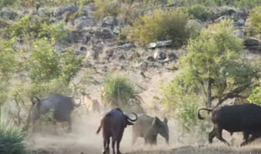 6頭ほどのライオンに囲まれたにも関わらず、高齢キリンはなんとが逃げおおせたのである。