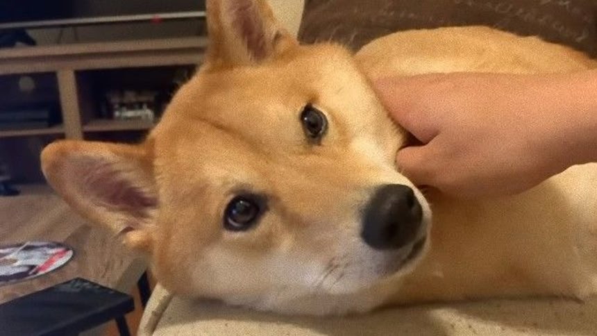 今回のどっきり被害者は柴犬のハルさんだ。うとうとお昼寝中のハルさんがどうにもこうにもかわいかったのだろう。飼い主さん、わっ!と驚かしてみたかったようだ。