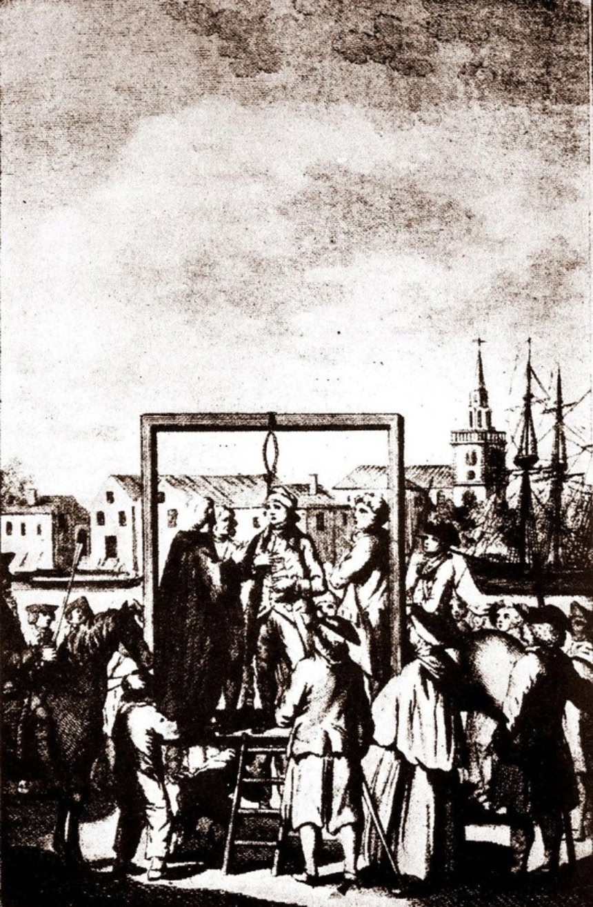 1701年、キッドは海賊行為と殺人の罪で有罪になり、同じ年にニューゲート監獄から引っ立てられて処刑された。